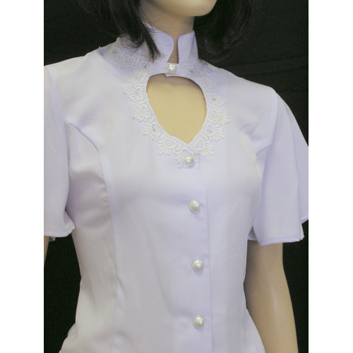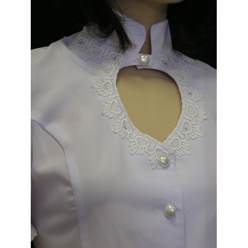 Heart Neck Short Sleeve Bridal Blouse, White